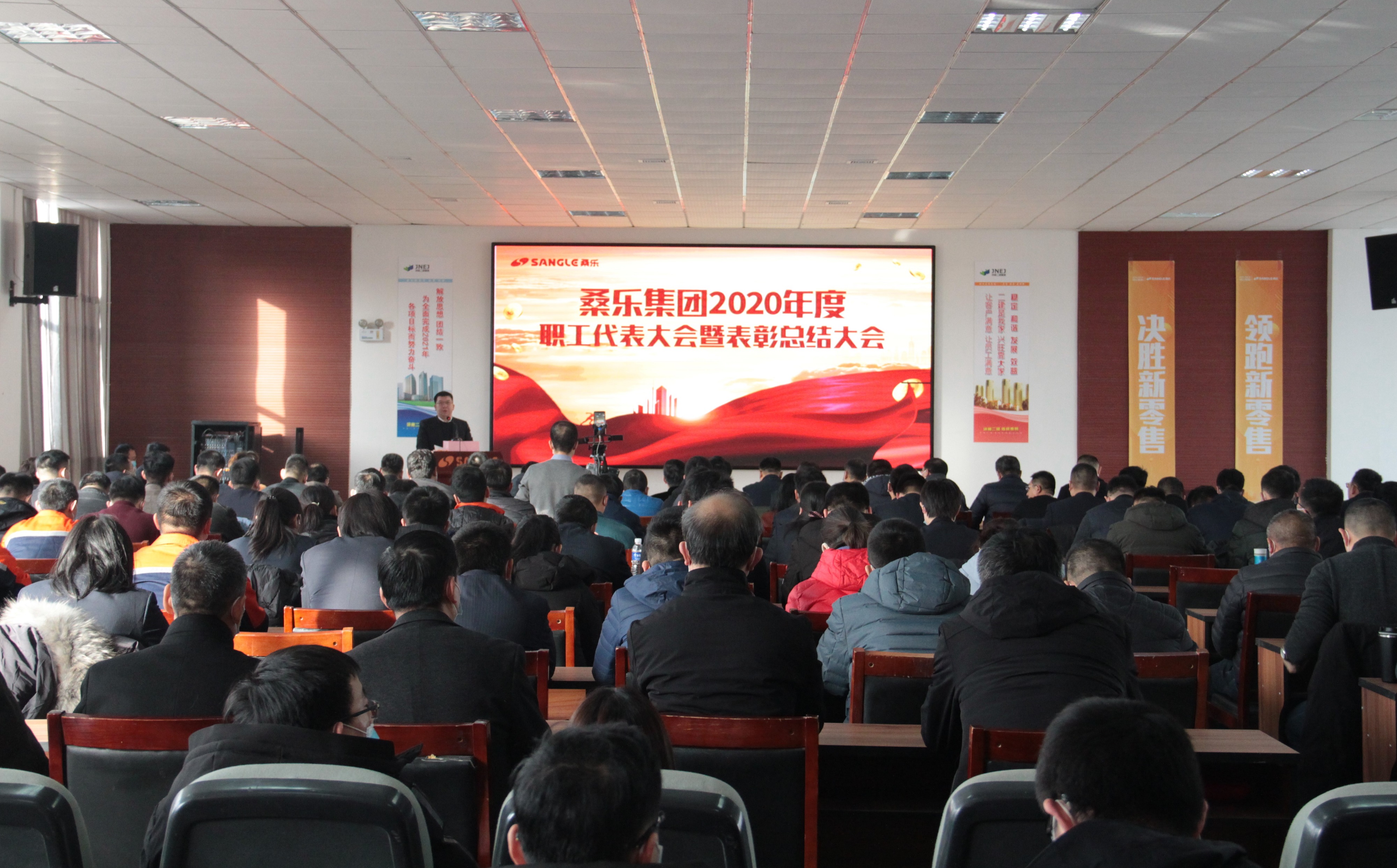 2月1日,桑樂集團(tuán)2020年度職工代表大會(huì)暨表彰總結(jié)大會(huì)在桑樂總廠隆重召開。董事長(zhǎng)王雪廣攜集團(tuán)領(lǐng)導(dǎo)班子成員、各部門職工代表共計(jì)150余人參會(huì)。會(huì)議由常務(wù)副總經(jīng)理馮磊主持。